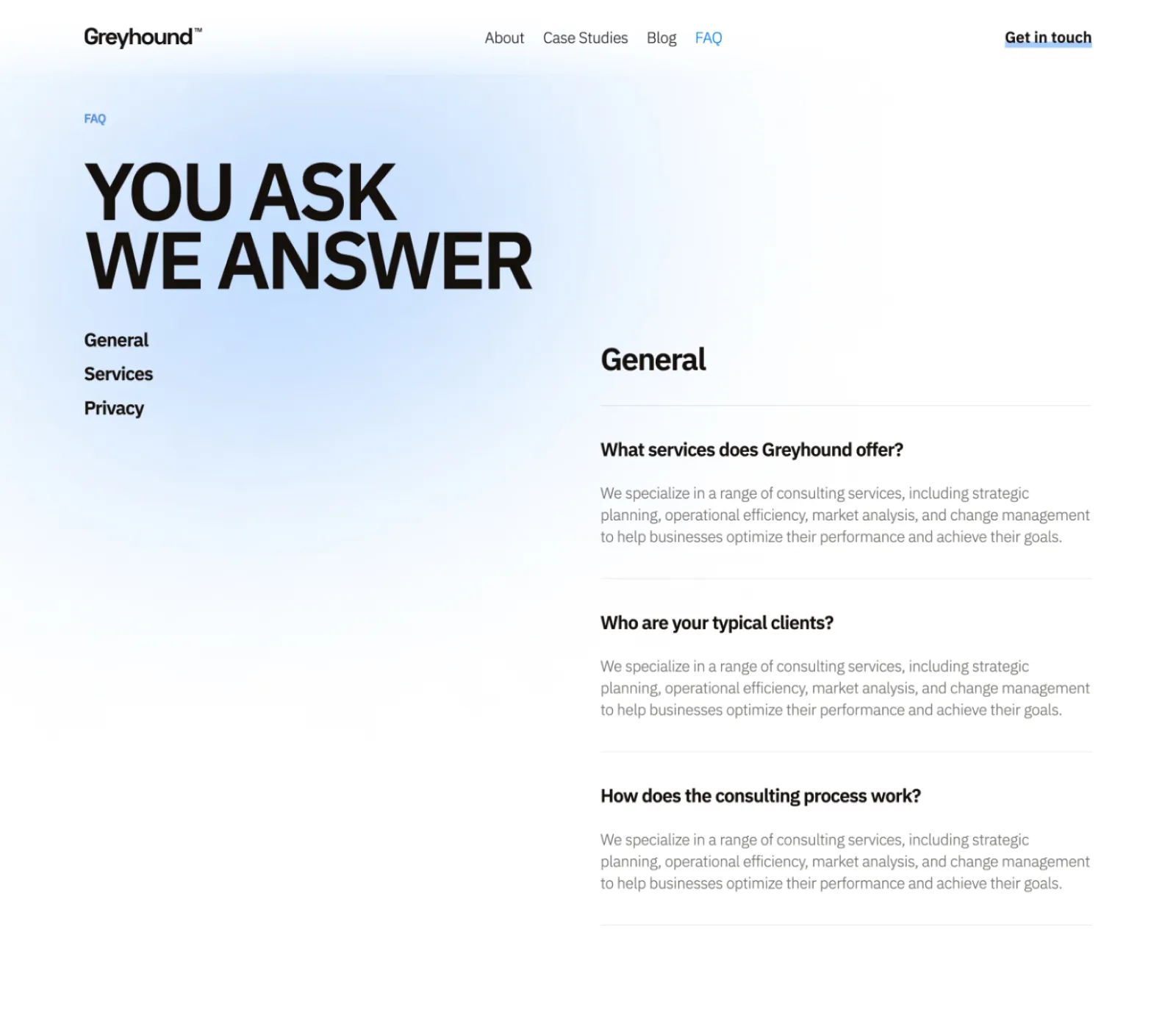 Greyhound Agency includes a blog and projects collections that are made on the powerful Webflow CMS. This will let you add new content extremely easily.